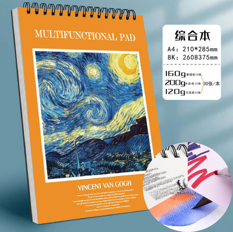 Are you ready to transform your artistic visions into reality? Our A4 Multiuse Sketchbook is the perfect companion for art enthusiasts and professional artists alike. With the iconic Van Gogh's Starry Night gracing its cover, this sketchbook not only inspires but also pays homage to one of the greatest painters of all time.