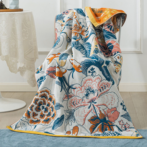 Blue Orange Flowers Cotton Towel Blanket 90*180cm