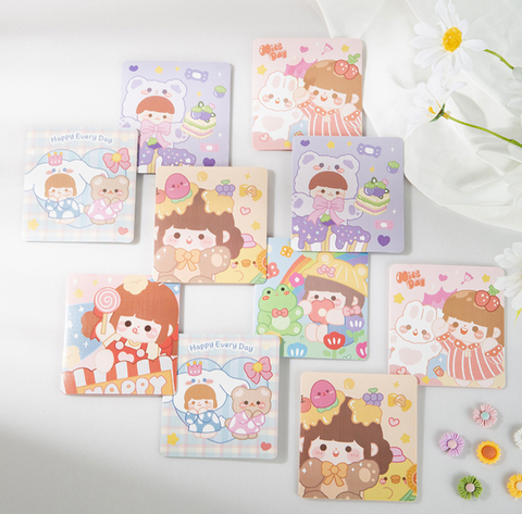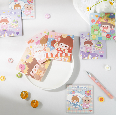 Bring a smile to someone special with our Charming Girl Card! This delightful and thoughtful token of your appreciation is sure to make the recipient feel special. Our unique dessert-themed cartoon card features an adorable girl with a bright pink dress, topped with a pink tulle flower crown - sending wishes of sweet joy! The inside is blank, so that you may write what you'd like for an extra personalized touch. And when you're done, simply close it with one of our sticks. All that's left is to surprise them with a gesture filled with love! Purchase the Charming Girl Card today and bring a playful smile to any loved one's day!