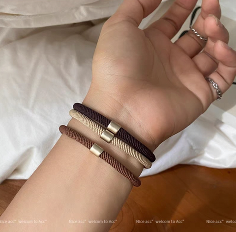 Perfect for hair accessory lovers, this stylish bundle comes in sets of two with four classic colors to match any outfit—Gray, Brown, Tan, and Black. Designed to be both durable and stretchy, these hair ties keep your hairstyle secure and comfortable all day long.