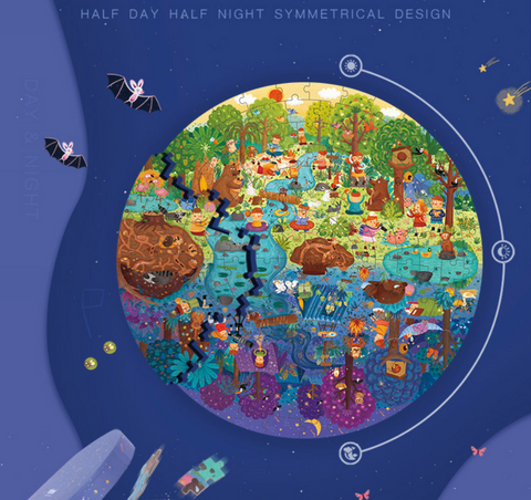 Our puzzles are made with high-quality materials and extremely detailed graphics that will leave you in awe. Each puzzle is round shaped and transitions between two sceneries as you complete it. The packaging is also very beautiful, making it a perfect gift for puzzle lovers of all ages.