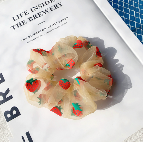 š Fashion Meets Function: Beyond its striking aesthetics, our Sheer Strawberry Scrunchie is made from high-quality, sheer fabric that's gentle on the hair while providing a firm hold. This means you can enjoy your day worry-free, without having to constantly adjust or remove your scrunchie due to discomfort or slippage.