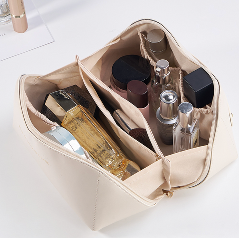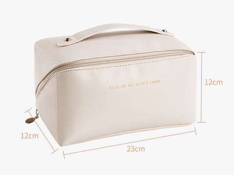 Explore the world in style with this adorable Square Travel Makeup Bag! Don't let anything hold you back — now you can tote along all your essential beauty items without over-packing. This chic makeup bag comes in four fashionable colors: brown, beige, black, and pink. Its two large pockets and multiple slots offer enough storage space to fit everything from lipsticks to eyeliners while still looking cute and sophisticated. So go ahead and travel the world with confidence knowing that your essentials are perfectly organized! #TravelSmart